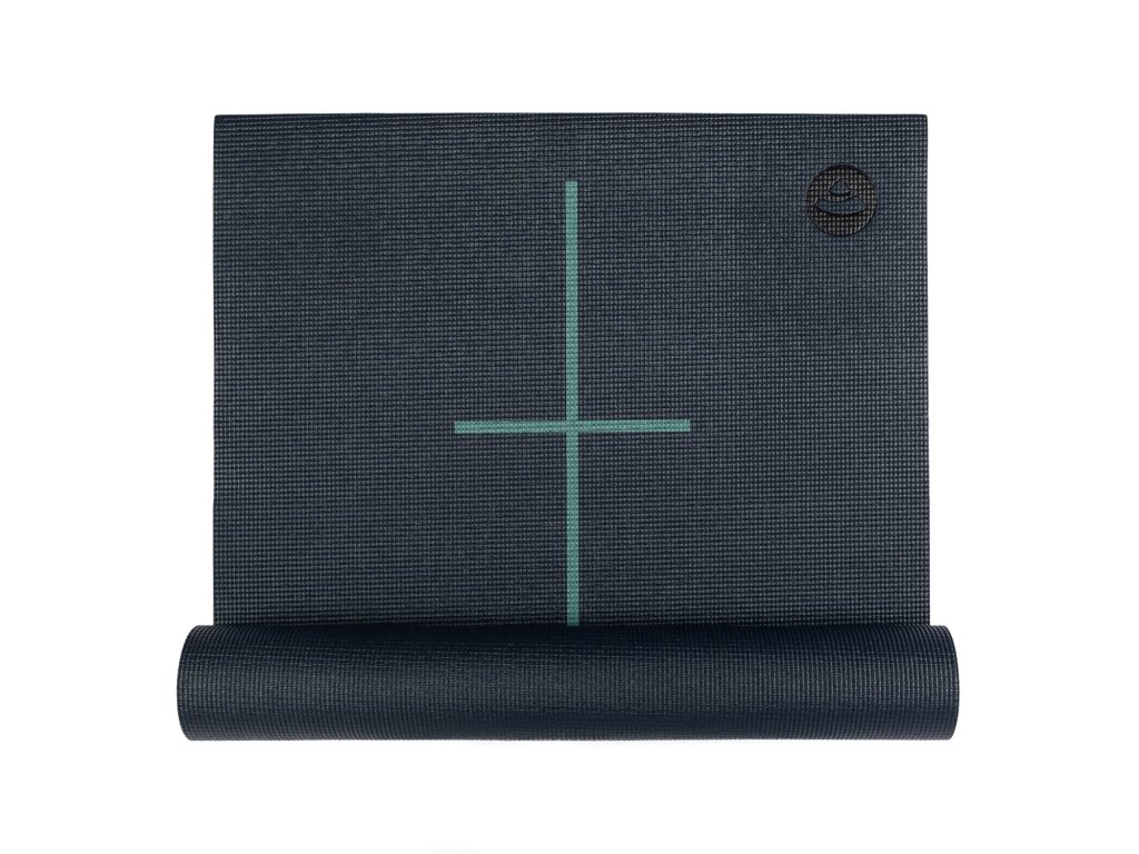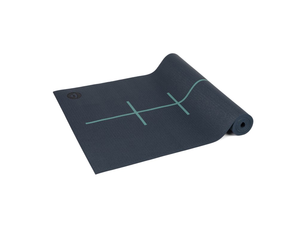 BODHI Jóga podložka LEELA Yantra Alignment, 183x60x0,45 cm, půlnoční modrá
