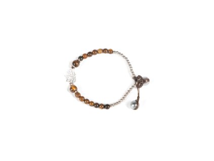 Náš speciální náramek s drahokamy promění každý outfit v zářivý outfit. Jemné kameny a perly se lesknou na vašem zápěstí a jsou doplněny stříbrným symbolem jógy uprostřed náramku. Náramek se zapíná stříbrnými korálky, které se provléknou smyčkou.