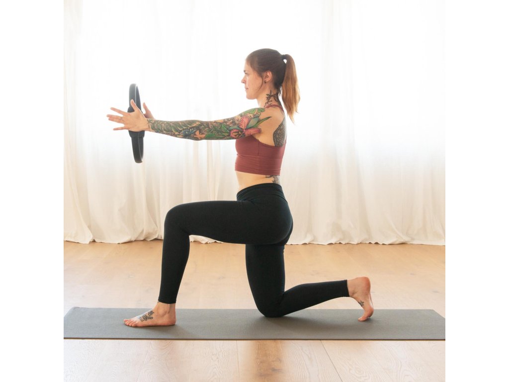 Cvičení s kruhem vám zajistí bezpečné a správné držení těla během tréninku. Posiluje zejména hluboké svaly, které přispívají ke správnému a vzpřímenému držení těla i mimo podložku v běžném životě.