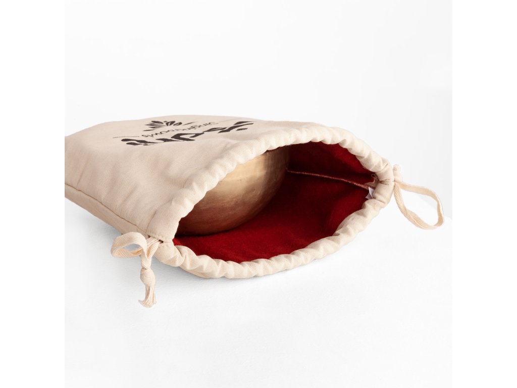 Bavlněný sáček na zpívající mísu je ideální pro uložení a přepravu vaší zpívající mísy. Chrání mísu před prachem a nečistotami, když se nepoužívá, a během přepravy ji chrání před nárazy a poškrábáním. Sáček slouží také jako krásné dárková balení na zpívající mísu a příslušenství.