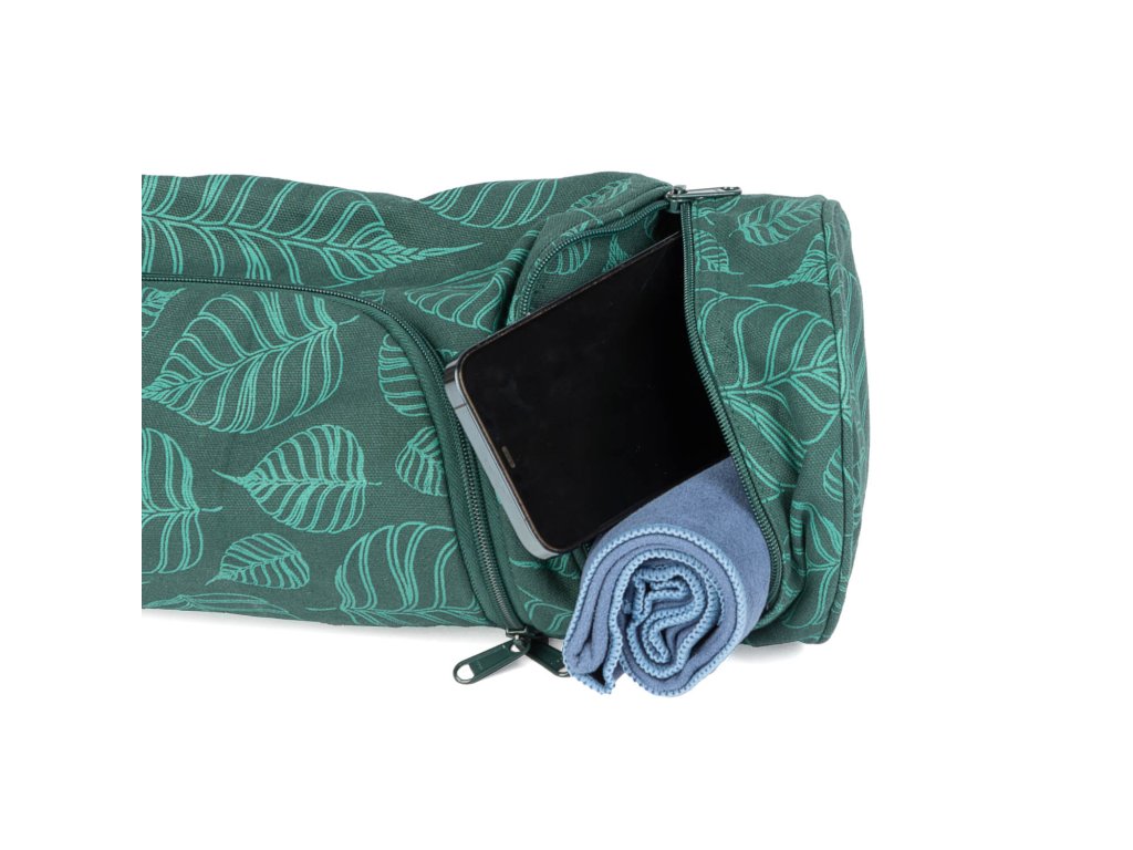Vak na jógu z pevné bavlny s potiskem – spolehlivá ochrana podložky před vlhkostí a nečistotami na cestách. Praktické dvě kapsy pro uložení cenností a jógových pomůcek. Ideální na přenos a skladování jógové výbavy.